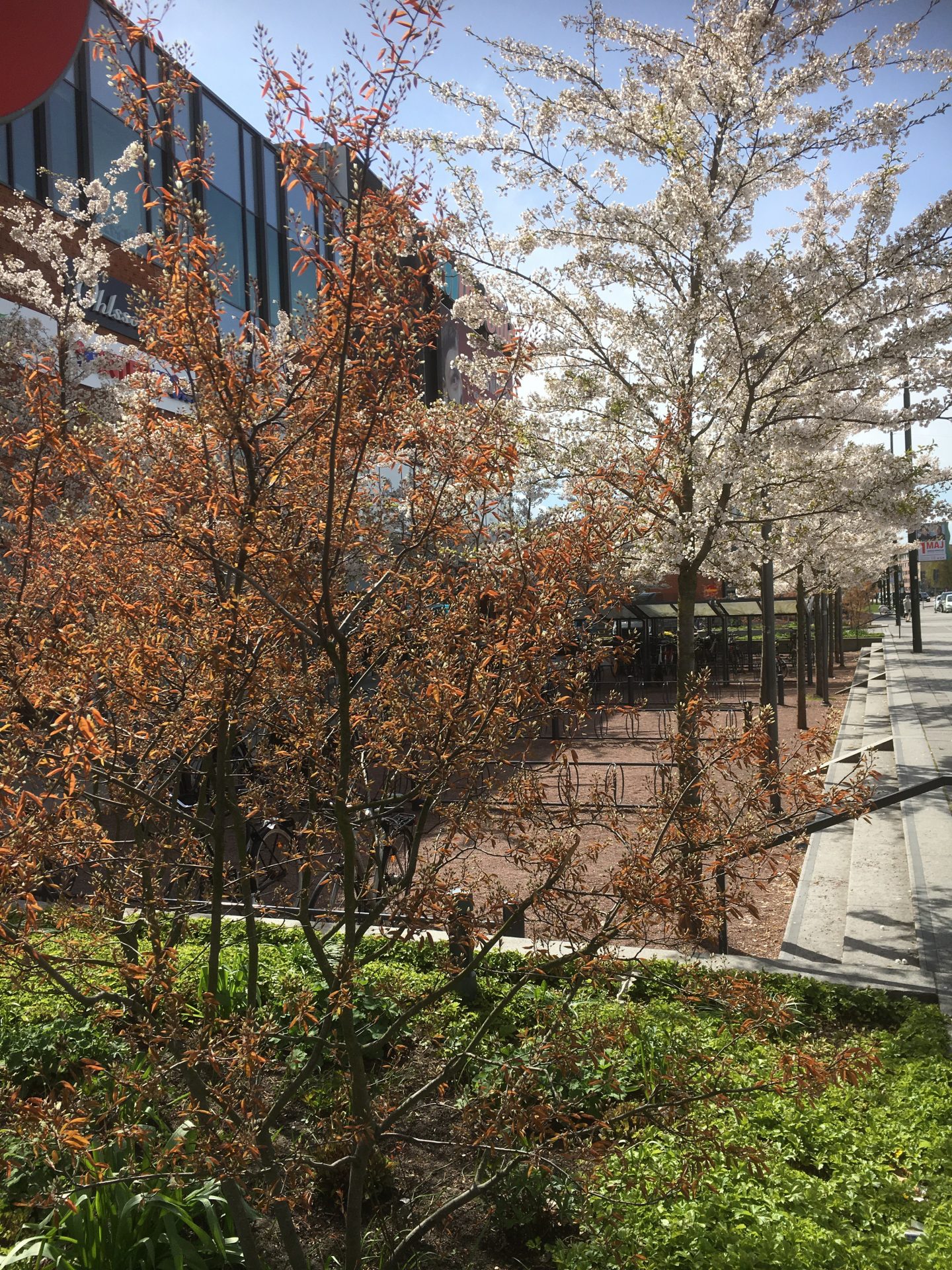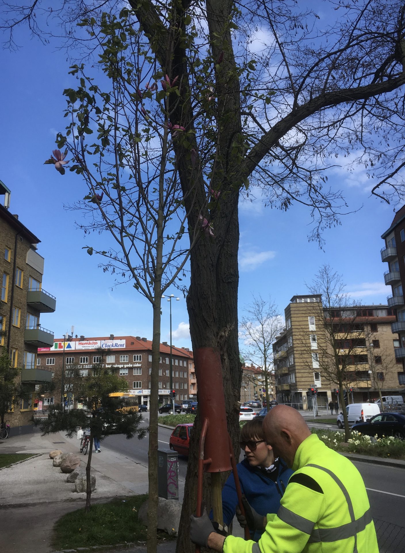 Idag fick vi äran att plantera fler träd till Mobilia i Malmö. Här gillar man träd. För några år sedan planterade vi ett 50-tal träd till dem, som några av dem just nu blommar med en makalös färgprakt.